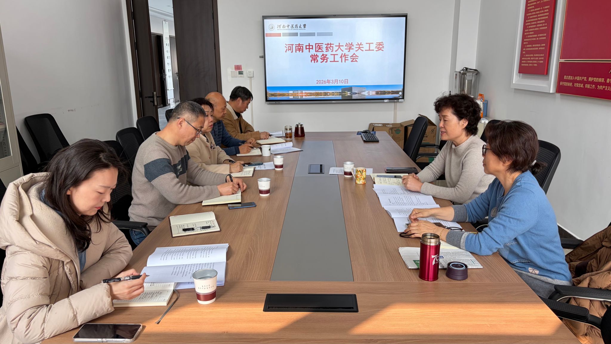 (文图/张晨)2026年3月10日上午,校关工委召开常务会议,研究安排2026年新学期工作,校关工委驻会人员及离退处、校团委相关负责同志参加会议,关工委常务副主任张丽霞主持会议。